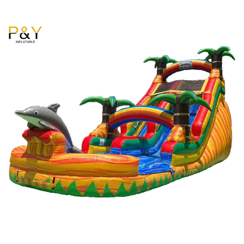 Scivolo gonfiabile per bambini di grado commerciale parco giochi all'aperto grandi tobogane de agua buttafuori che saltano scivolo d'acqua